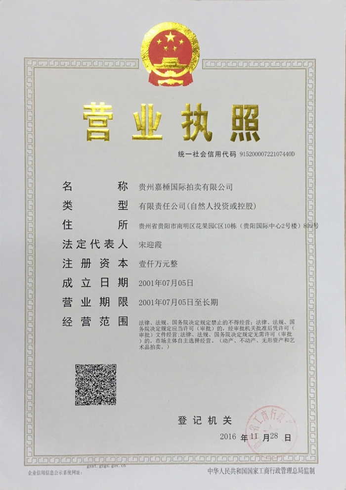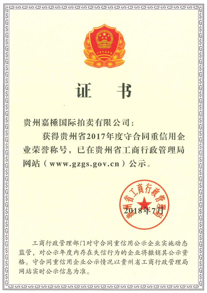 貴州嘉棰國際拍賣有限公司是主要從事動產(chǎn)、不動產(chǎn)、無形資產(chǎn)和文物藝術(shù)品拍賣業(yè)務(wù)的大型綜合性拍賣企業(yè),是中國拍賣行業(yè)協(xié)會會員,貴州省拍賣行業(yè)協(xié)會理事單位,中國拍賣行業(yè)協(xié)會AA級資質(zhì)企業(yè),貴州省連續(xù)十一年重合同守信用企業(yè),全省拍賣先進(jìn)企業(yè),貴州省公物拍賣人。公司充分利用多年來積累的客戶資源和全新的經(jīng)營理念服務(wù)于貴州經(jīng)濟(jì)發(fā)展。同時也為貴州省國有企業(yè)的資產(chǎn)重組、改制改造以及不良資產(chǎn)的變現(xiàn),起到積極的作用。貴州嘉棰國際拍賣有限公司自成立以來,多次成功地組織了房產(chǎn)、土地、機(jī)器設(shè)備和各種物資等標(biāo)的拍賣。并于2001年12月成為第一批貴州省高級人民法院及多家金融機(jī)構(gòu)指定的拍賣企業(yè)。 公司下設(shè)產(chǎn)權(quán)部、市場發(fā)展部、財務(wù)部、人事部和辦公室。現(xiàn)有員工11名,大專以上學(xué)歷員工占總數(shù)的90%,擁有精通業(yè)務(wù)的專門人才。有國家注冊拍賣師3名,公司工作人員大多參加過中國拍賣行業(yè)協(xié)會組織的從業(yè)資格培訓(xùn)。公司堅持“客戶至上,執(zhí)業(yè)嚴(yán)謹(jǐn),公平競.....